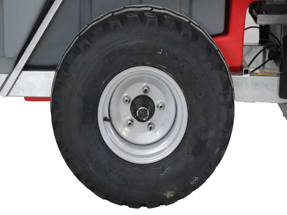 El timón ofrece tres puntos de enganche para ajustarse a diferentes alturas del tractor, mientras que el eje regulable en anchura garantiza una estabilidad óptima incluso en terrenos irregulares. Las luces delanteras y traseras facilitan la visibilidad y la seguridad durante el transporte y la aplicación nocturna.