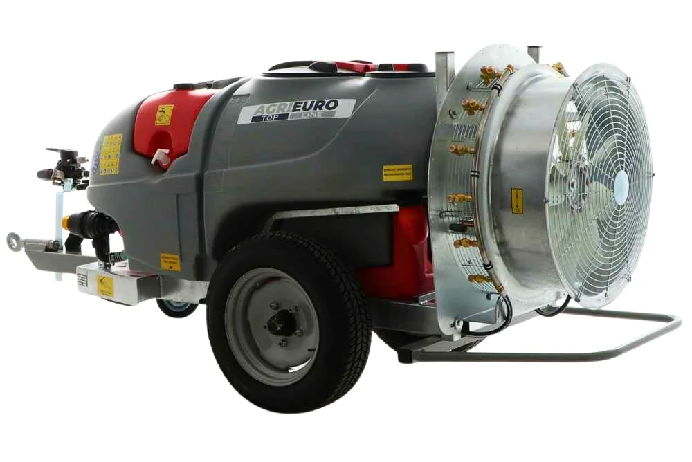 Atomizador arrastrado de alta eficiencia y maniobrabilidad, pensado para tratamientos fitosanitarios en superficies medias.